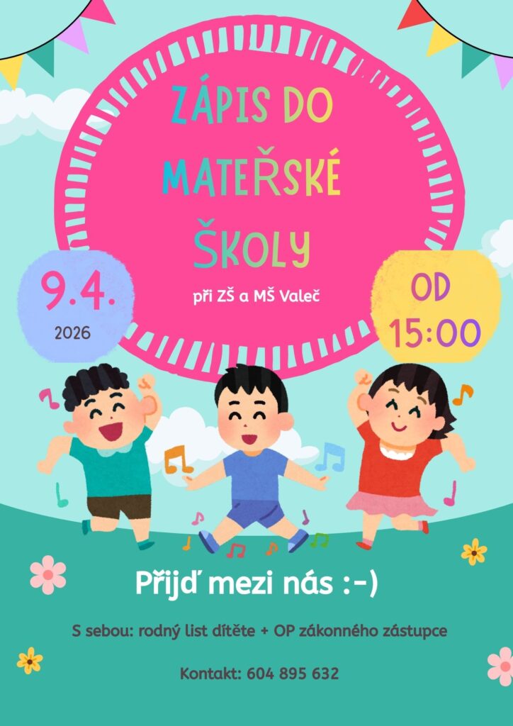 Zveme k zápisu do školky 9. 4. 2026 od 15:00